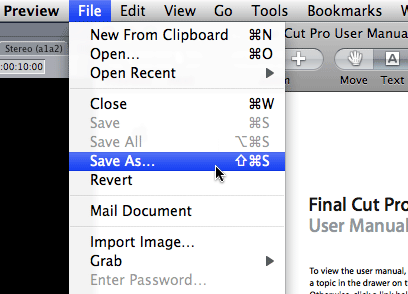 Every once in a while I like to check something in one of the Final Cut Studio manuals. They are stored as PDFs inside the applications themselves. It is possible to get inside the application using the Finder, but there is a simpler way.