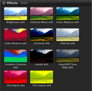 If you don’t want to use MTT, install these effects in Home / Movies / Motion Templates / Effects / Color: