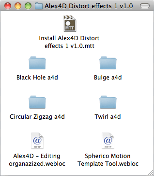 Once you have MTT installed on your computer, double-click the ‘Install Alex4D Distort effects 1 v1.0.mtt’ file.