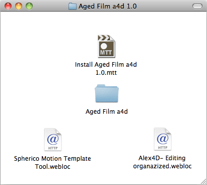 Once you have MTT installed on your computer, double-click the ‘Install Aged Film a4d 1.0.mtt’ file.