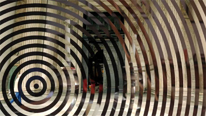 In this Final Cut Pro X transition the incoming clip is divided up into a series of concentric shapes which fade in over the outgoing clip. You can choose from circles, triangles, squares and polygons with more sides. You can also control the width between each shape, the softness of the edges amongst other settings
