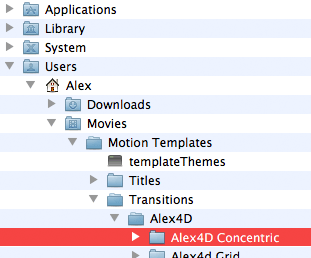 If you don’t want to use MTT, install these effects in Home / Movies / Motion Templates / Transitions / Alex4D: