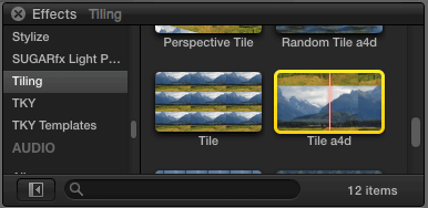 To apply the effect in Final Cut Pro X, go to the Tiling section of the effects browser: