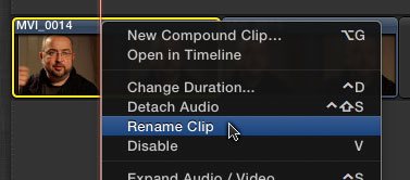 As well as event clips, you can use the same methods to rename title and generator clips also.
