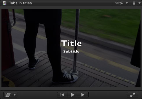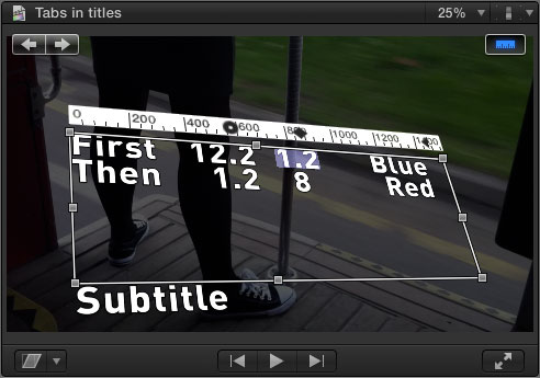 As tabs and the Distort tool are features implemented using code from the Motion application, tabs still work if you use the Distort tool to modify the title.