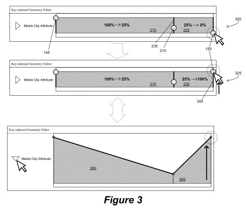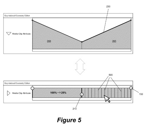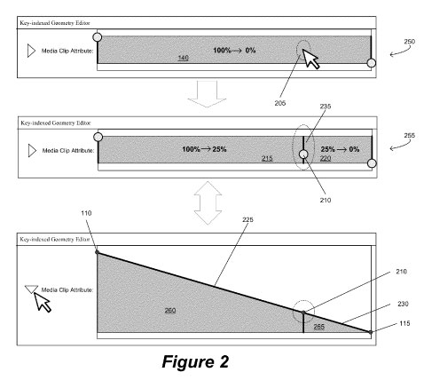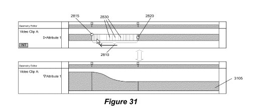 Four years ago, Apple applied for a patent that is relevant to animating parameters of clips and other content in a timeline. They were awarded patent 8,458,593 today.