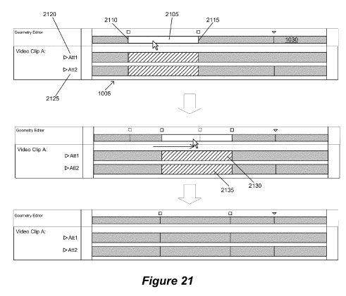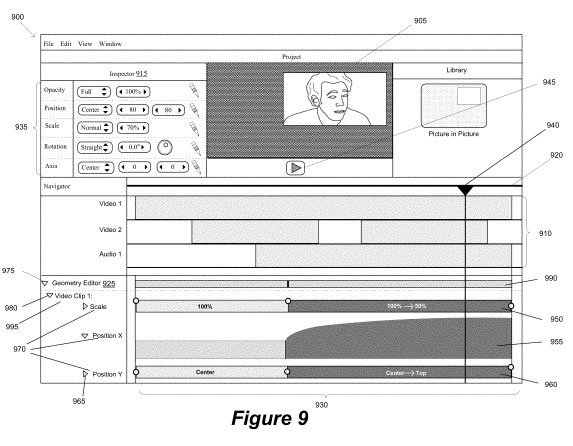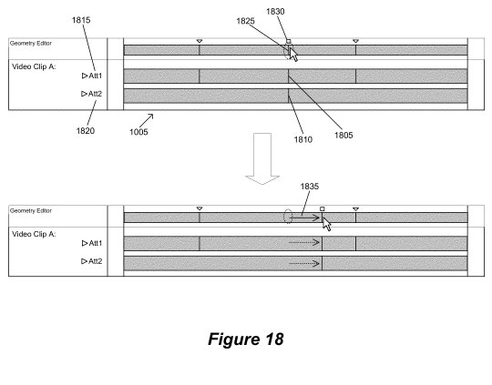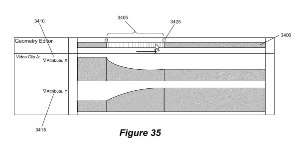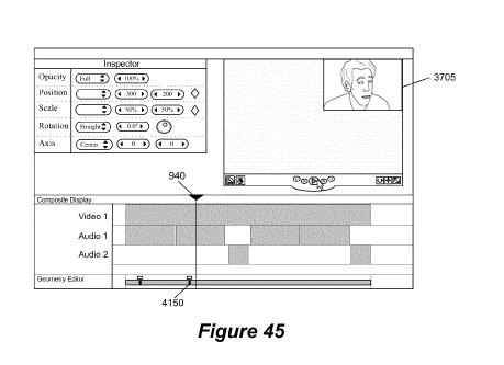 The example application shown in the patent looks like a version of Final Cut Pro that uses some elements from Motion, but not so many that editors are turned off. The editing temperament is somewhat different from that of motion graphic designers.